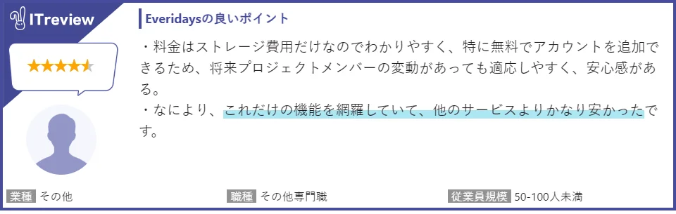 ITreviewでは、5点満点中「4.5点」と高評価をいただいております。(2025/6時点)